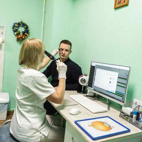 - Офтальмоскопия — осмотр глазного дна с помощью специального инструмента — офтальмоскопа. Этот метод может позволить врачу обнаружить такие заболевания, как диабетическая ретинопатия или отслоение сетчатки.